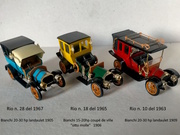 PS Il n. 10 è stato disinvoltamente trasformato in una Mercedes Benz dalla Rio moderna con il n.4591 perché assomiglia alla Benz Typ C6 20-35 ps landaulet del 1909 conservato al Museo Mercedes di Stoccarda...tra l' altro è sbagliato pure il nome, nel 1909 Mercedes (costruite dalla Daimler) e Benz erano Case concorrenti, si fusero solo nel 1926! Di questa Benz esistono le riproduzioni di Matchbox e Ziss RW.